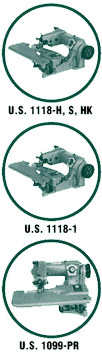 ![]() | WOMEN’S WEAR, DRESSES, NEGLIGEES, BLOUSES U.S. MODEL 1118 Used for felling and hemming operations on popular priced negligees, dresses and blouses made of “soft” materials. The 2 to 1 ratio stitch is used on soft cottons, silks and all light weight materials and the 1 to 1 stitch for heavier cottons, linens, etc. U.S. MODEL 1118-N Strictly for hemming dresses, blouses and negligees made of nylon, tricot and fine silk. Produces a very narrow overcast stitch resembling a straight running stitch – a fine finish for conventional turned-in hems from 3/4″ and up to 2 to 1 or 1 to 1 ratio stitch. U.S. MODEL 1118-S For Qiana and similar type fabrics. Assures quality penetration and uniform stitch formation while maintaining complete control on lightweight materials. U.S. MODEL 1118-HK Developed for fine silk, delicate acetate and “soft” synthetics. Gives quality results. U.S. MODEL 1118-1 Handles synthetics, man made, polished cottons and other “hard” fabrics, including raincoats. Penetrates without blunting the needle. Gives maximum needle life. U.S. MODEL 1099-PR For flat narrow even hems, folder controlled on dresses with circular or open-type skirt. Also adaptable to children’s dresses and skirts. 2 to 1 ratio stitch for silk, synthetics and all lightweight fabrics, 1 to 1 ratio stitch for light woolens. Folder sizes available: 1/4″, 5/16″, 3/8″ in width. Positive folder control. U.S. MODEL 1099-PR Produces Hand Roll Finish. Regular length stitch for lingerie, knit shells and dresses. Short stitch length for scarves and handkerchiefs. 1 to 1 ratio stitch. Folder sizes available: 1/4″, 5/16″, 3/8″ in width. Also suitable for knit active wear. |