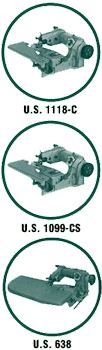 | WOMEN’S WEAR SUITS AND COATS U.S. MODEL 1118-C Universal Sportswear Models recommended to manufacturers of coats and suits for hemming where seam binding is utilized. Also used for raw edge finish. Features 1 to 1 and 2 to 1 ratio skip stitch. Equipped with swing away work plate for felling sleeves. U.S. MODEL 1108-C Made on special order. For felling the bottoms of fine quality coats and similar garments requiring 3 to 1 and 1 to 1 skip stitch ratio. ADDITIONAL SUBCLASSES AVAILABLE U.S. MODEL 1099-CS A general utility machine with a 1 to 1 stitch. Fells the bottoms of all coats, jackets and skirts. Swing-out work plate allows padding of labels on sportswear jackets as well as making sleeve tacking a fast and easy operation. U.S. MODEL 648 “Dura-Edge” machine is a must for manufacturers of coats with one piece fronts. Permanently fastens edges. Puckerless stitches. Ideal for medium weight coats and jackets. U.S. MODEL 638 Face tacking machine offers absolute penetration on all weight garments. Two separate dial controls assure even, fine penetration. Elasticity of stitch guarantees quality results. Handles soft synthetic fabrics. U.S. MODEL 638-1 The original hidden stitch machine for felling pinked coat bottoms. Superior stitch elasticity – Positively no impression on either side of coat. Positive control dials. Large work plate. For lightweight fabrics. U.S. MODEL 638-1-S For heavy duty work. Takes thick seams without distorting stitch/or fabric. U.S. MODEL 638-F For fake fur coats. Face tacking for facing. Leaves no impression on either side. 2 separate dials. | ![]() |